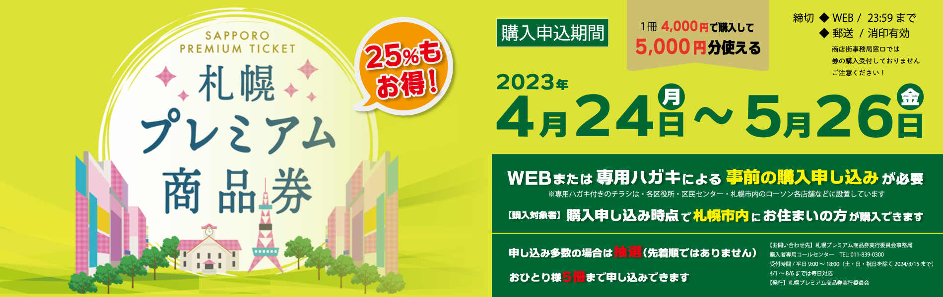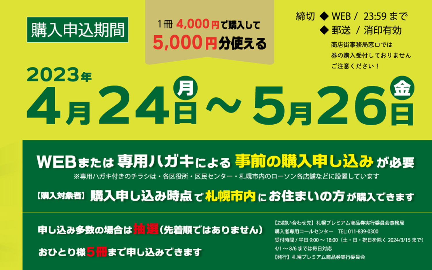 琴似商店街商店街組合のお店で使える「買物券」がなんと10000円の「一等」30本!