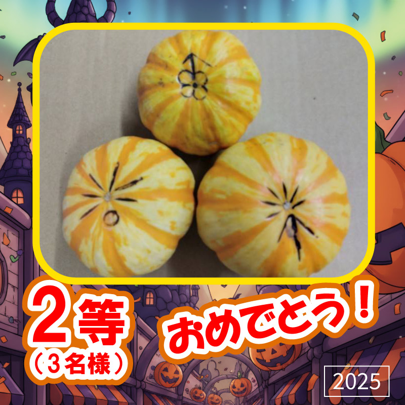 当たりカボチャの実物をを持参のうえ引き換えとなります。(写真や画像での交換はできません)